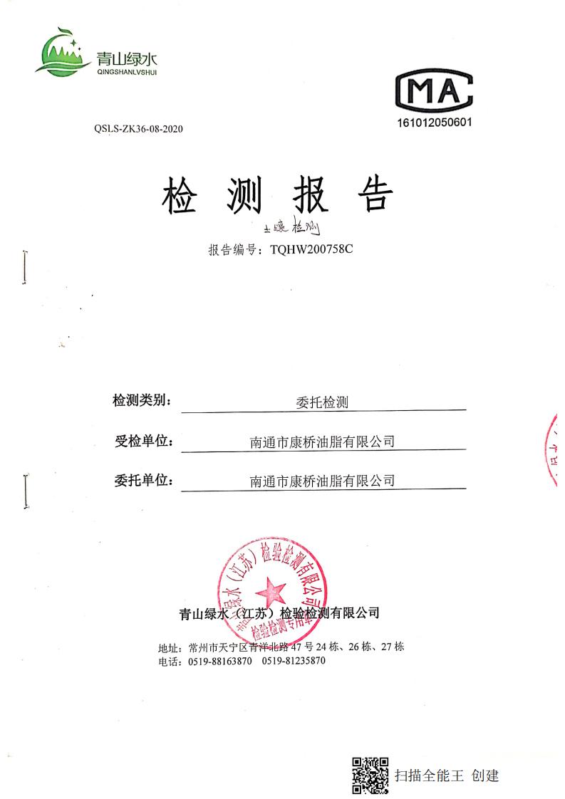 南通市康橋油脂有限公司7月份環(huán)境檢測(cè)報(bào)告